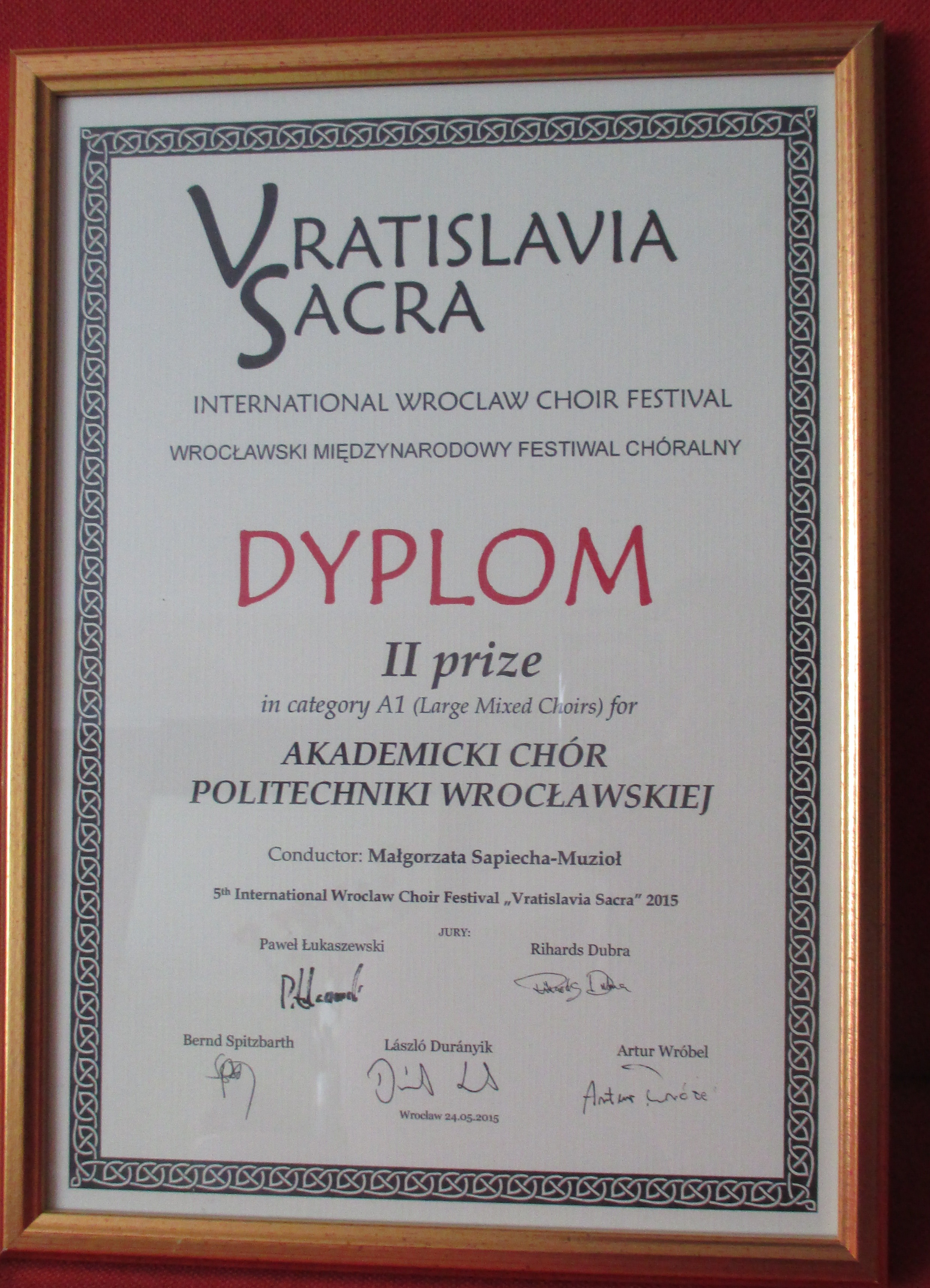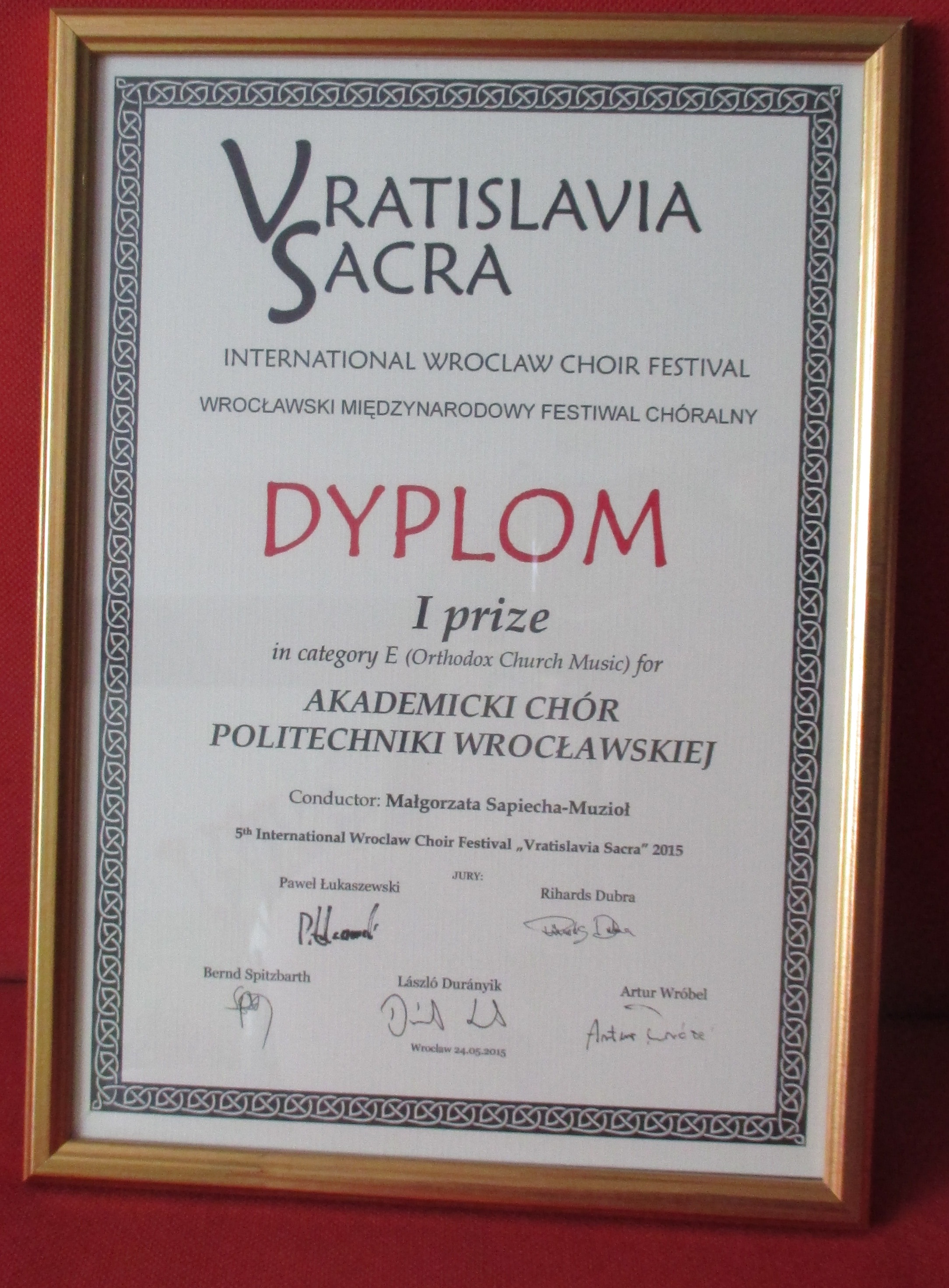 Akademicki Chór Politechniki Wrocławskiej został dwukrotnym laureatem V Wrocławskiego Międzynarodowego Festiwalu Chóralnego „Vratislavia Sacra”!