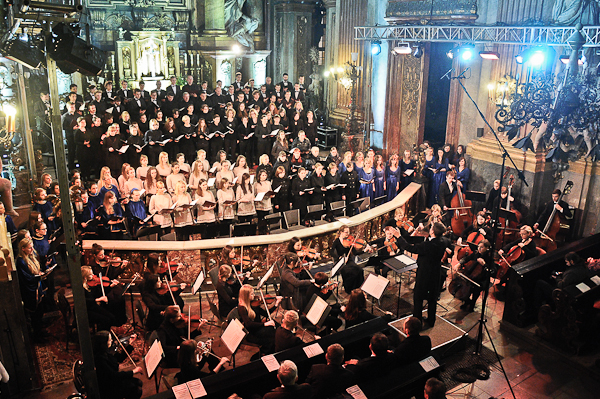Uroczyste wręczenie nagród akademickim chórom uczelni Wrocławia, Opola i Zielonej Góry odbyło się 15 listopada br. w Kościele Uniwersyteckim przed nadzwyczajnym koncertem z okazji Święta Nauki Wrocławskiej. Laudację wygłosił prof. Krystian Kiełb – rektor Akademii Muzycznej. Nagrodę odebrała Małgorzata Sapiecha-Muzioł, kierownik artystyczny naszego chóru wraz z przedstawicielami pozostałych laureatów, w imieniu których zabrał głos Alan Urbanek, pod którego batutą 13 połączonych chórów akademickich z towarzyszeniem Akademickiej Orkiestry Symfonicznej Akademii Muzycznej im. K. Lipińskiego we Wrocławiu wykonało utwór W.A. Mozarta „Ave Verum Corpus”, a następnie „Gaude Mater Polonia”. W drugiej części koncertu z udziałem solistów: Marceliny Beucher – sopran, Piotra Łykowskiego – alt, Jędrzeja Tomczyka – tenor, Pawła Kołodzieja – bas, wykonano „Te Deum” Antona Brucknera.