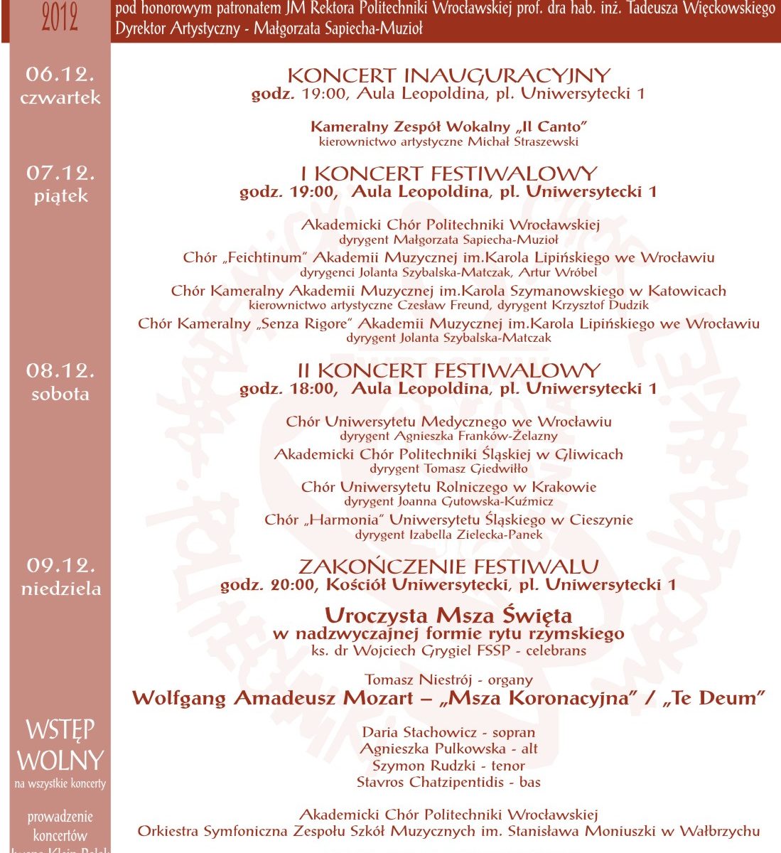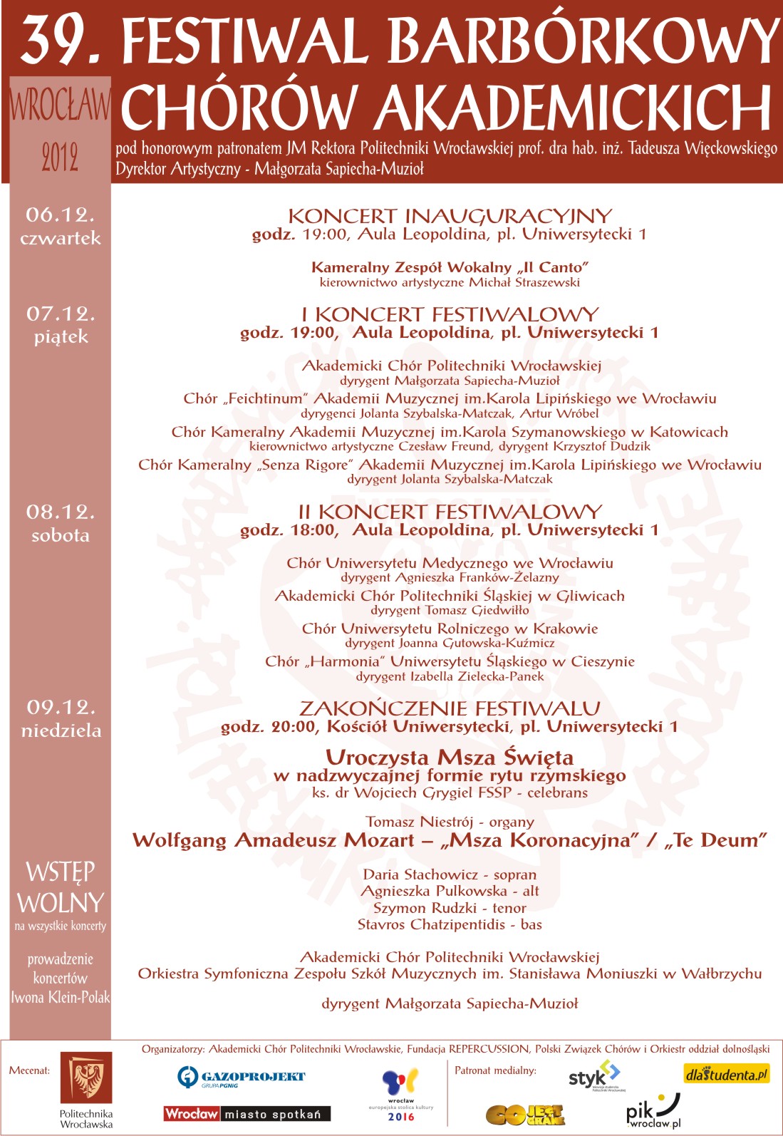 Program 39 Festiwalu Barbórkowego Chórów Akademickich